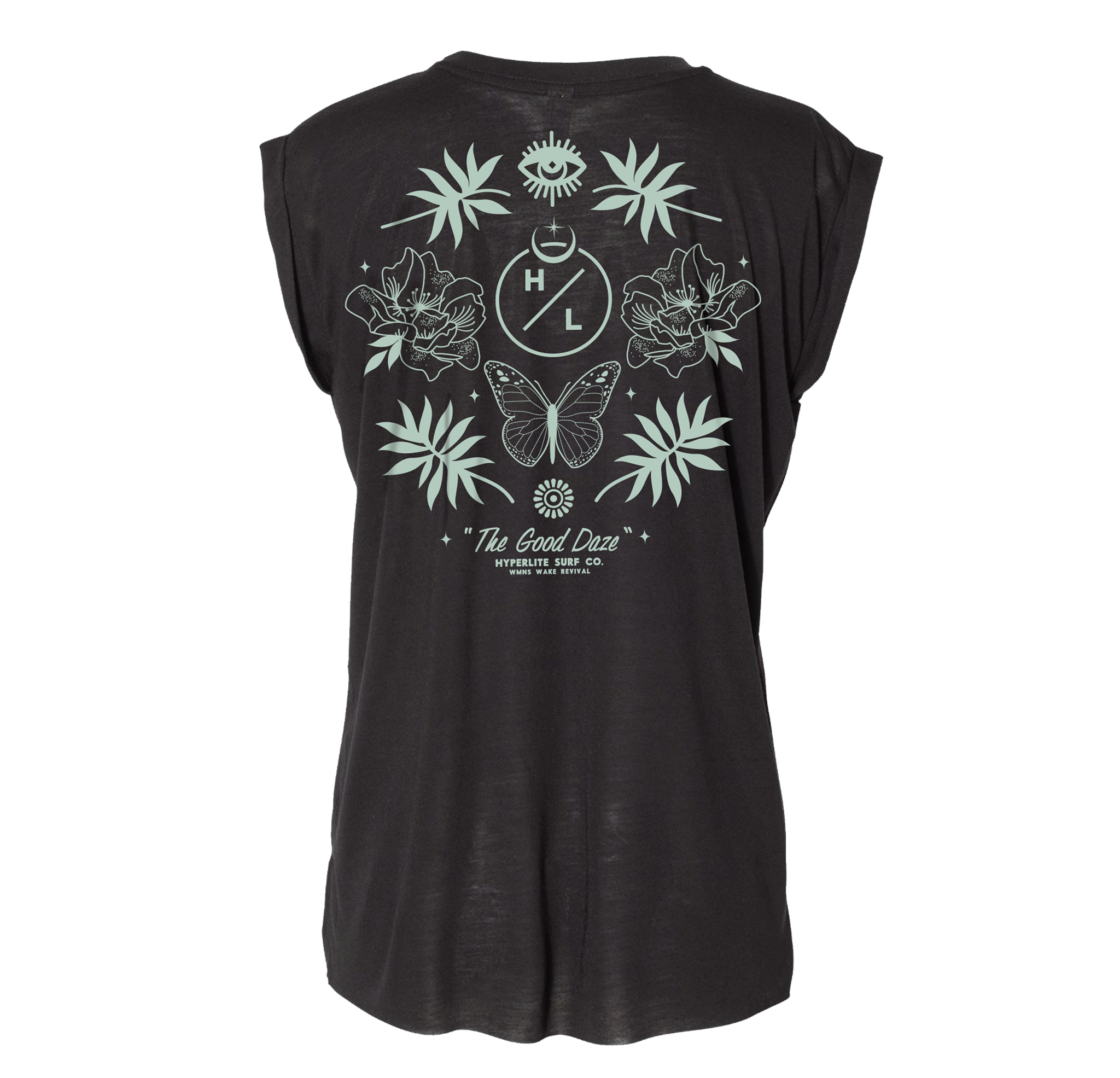Good Daze Art – Ladies’ sleeveless T FEATURES: • Relaxed Drapey Fit • 3.7oz./yd2 65/35% Polyester/Viscose • Side Seams • Rolled Cuffs • Hi-Low Raw Bottom Hem • Tear Away Label • Sizes: S-XL