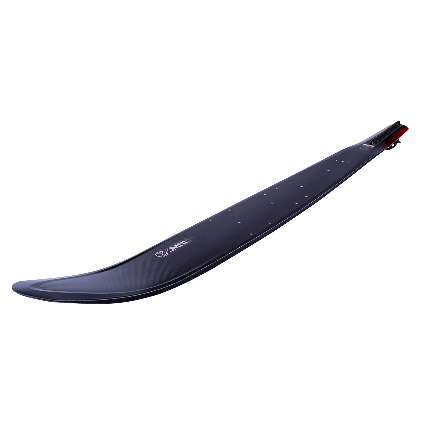 Overview: The OMNI waterski is optimized for the skier who needs one ski to do everything. Developed for high versatility with added responsiveness, the Carbon OMNI marries high performance aggressive skiing with the efficiency essential for open water skiing. Shape: The Omni was designed with a Hybrid Waist Width, halfway between those typically found in traditional skis and those in wideride skis. This provides for smooth instinctive turns at a wide range of speeds. It’s also offered in a Wide Edition, providing additional lift for easier getups and stable turns. The Omni’s Continuous Rockerline executes intuitive turns with no paralleling while the Clean Edge Technology tail reduces drag 50% by allowing water to release cleanly off the bottom of the ski. This differs from conventional edges where water wraps around the bevel, up the sidewall and releases off the upper edge creating suction. The Clean Edge bevel-less tail offered in the Omni designs, Clean Edge 3.0, produces more acceleration with less skier input. In addition, we’ve enhanced stability by maintaining more bevel between the rear foot and fin. The result is a fast moving highly efficient ski with the handling required for tight line turns.