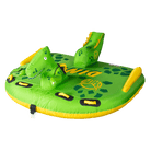 The Dino is a 3 rider towable tube built for fun days on the lake.  The Dino can handle up to 3 riders but it can be ridden by 1, 2 or 3.  The center rider sits on the deck of the tube while the outside riders lay in the prone position.  Built with only the finest materials and guaranteed with our 1 year warranty, this tube will keep you where you want to be…on the water.